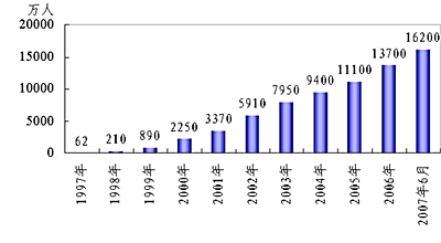就这样,从早到晚,几乎事事都与网络相关。截止2007年6月30日,中国网民人数达到了1.62亿人(见上图)。互联网正在成为各界人士获取信息的主要通道,成为政府、企业提高工作效率的沟通平台,成为人们休闲娱乐的造梦工厂。